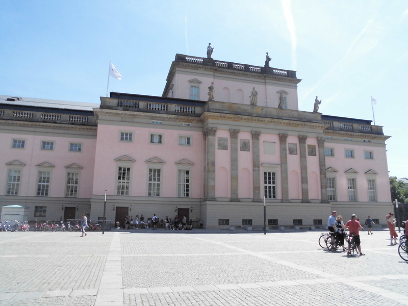 Dort um die Ecke startet auch die bekannte Buslinie 100. Dort im Doppeldecker oben und vorne einen Platz ergattert und 5 Liter Wasser verloren. Puuuh, war das heiß!!! Endstation Alexanderplatz. Dort was gegessen und mit der Linie 200 zur "Mall of Berlin". Schön kühl inside.